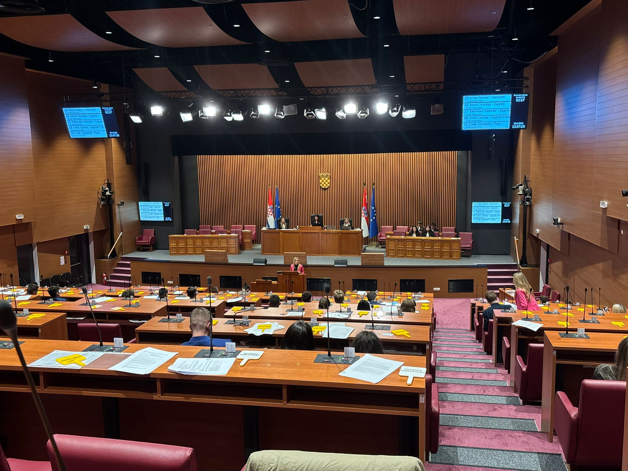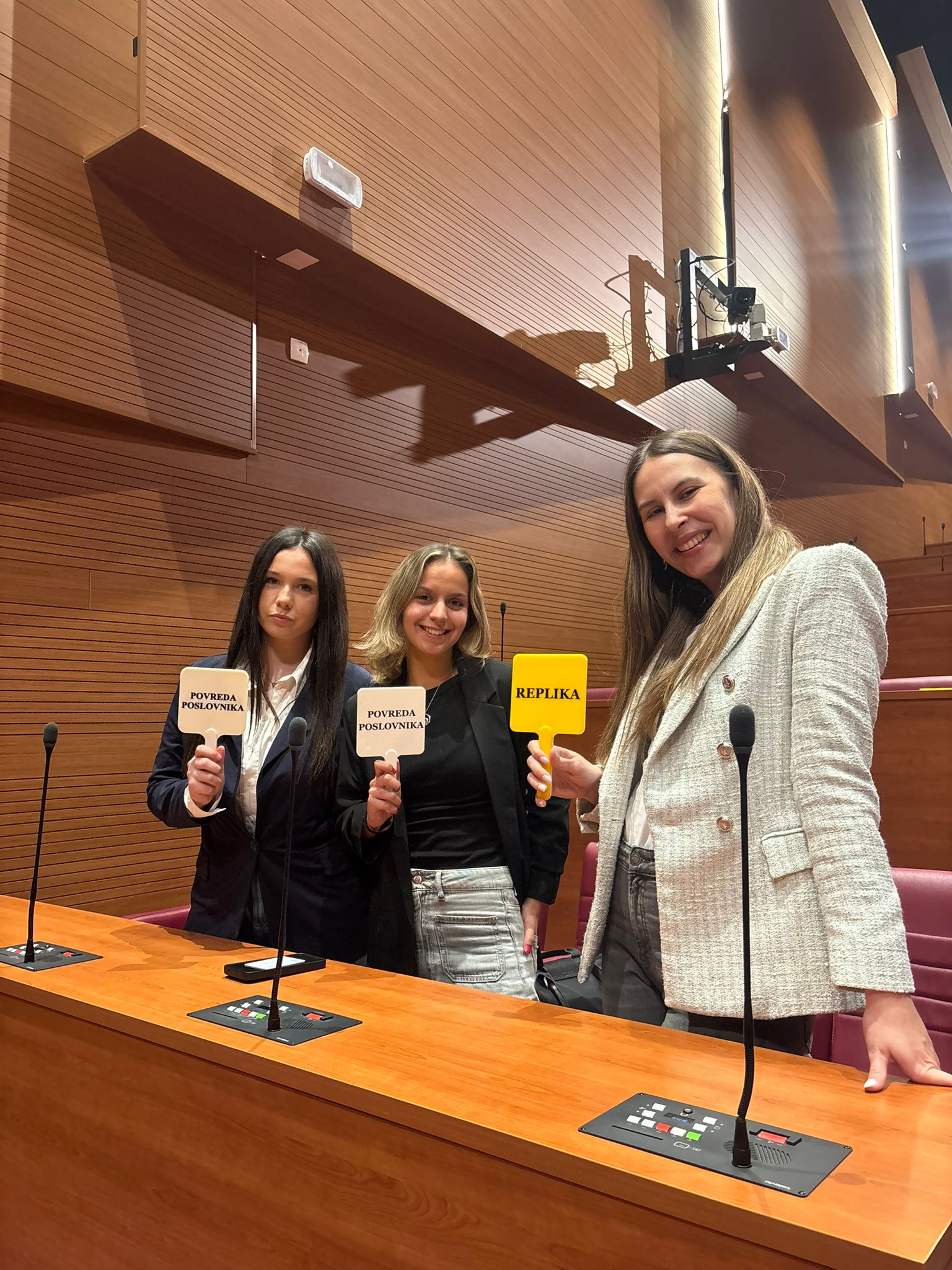 Korina i Marina govorile su u ime Kluba zastupnika Gornjogradske gimnazije. Tema rasprave je bila o Strategiji demografske revitalizacije Republike Hrvatske do 2033. godine te pritom stekli vrijedan uvid u funkcioniranje zakonodavne vlasti i proces donošenja odluka. Sudjelovanje im je bilo zanimljivo i poticajno iskustvo koje će rado pamtiti.