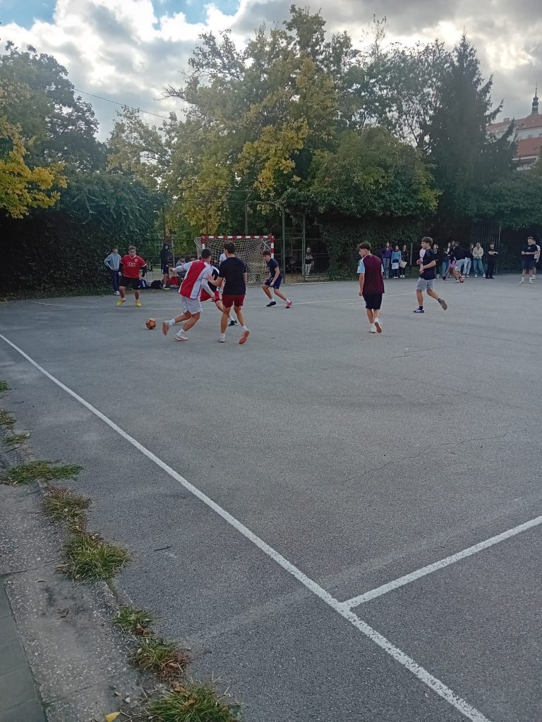 Započeli smo s nogometnim turnirom. S obzirom da naša škola nema uvjeta za odigravanje turnira u nogometu 5 protiv 5, svratili smo do Opatovine i 3 dana uživali u borbi 17 muških ekipa, odnosno 90-ak učenika i nastavnika naše škole.