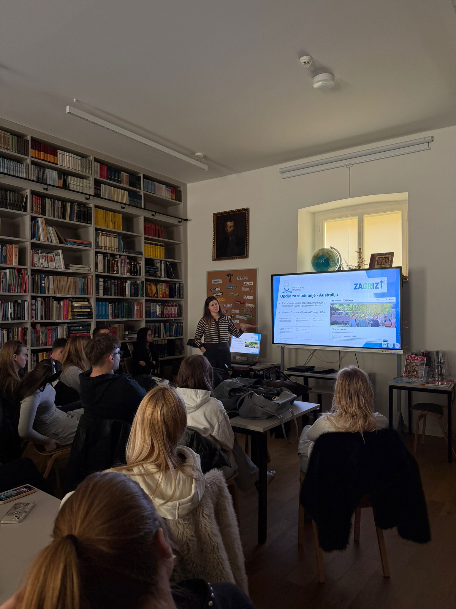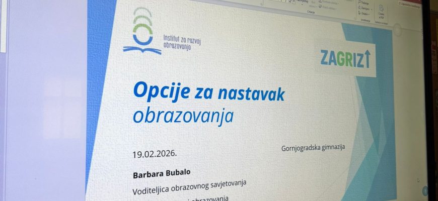 Prošli četvrtak u našu školsku knjižnicu došlo je troje studenata iz Instituta za razvoj obrazovanja koji pomažu učenicima pri odabiru fakulteta. Predavanje je bilo namijenjeno učenicima trećih i četvrtih razreda jer se nalazimo pred odlukom o nastavku školovanja. Studenti su objasnili da je njihova udruga neprofitna i besplatna te da pruža podršku mladima u informiranju o studijskim mogućnostima. Govorili su o studiranju u inozemstvu i predstavili što različite države nude, uključujući uvjete upisa, troškove i studentski standard. Upoznali su nas i s raznim programima razmjene te mogućnostima financijske potpore. Osim toga, istaknuli su važnost volontiranja i putovanja radi upoznavanja drugih kultura i stjecanja novih iskustava. Predstavili su vrijednosti svoje udruge te objasnili kako se učenici mogu učlaniti. Naglasili su da sudjelovanje u radu udruge omogućuje stjecanje praktičnog iskustva i razvoj različitih vještina. Takvo iskustvo može doprinijeti kvalitetnijem životopisu u odnosu na osobe koje nemaju dodatne aktivnosti izvan formalnog obrazovanja. Na kraju su podijelili svoje kontakte kako bismo im se mogli obratiti za dodatne informacije, a predavanje je bilo informativno i korisno za sve prisutne.