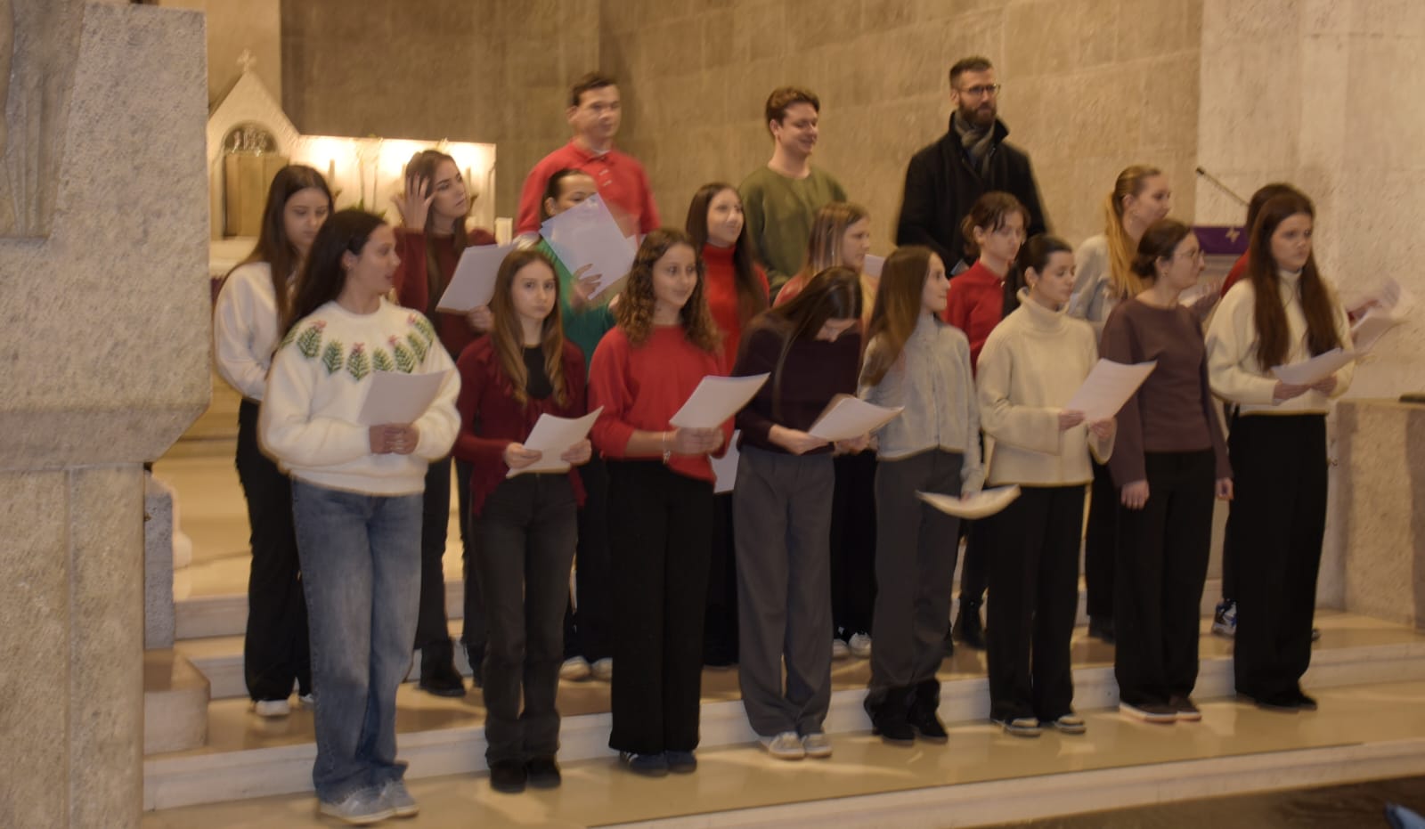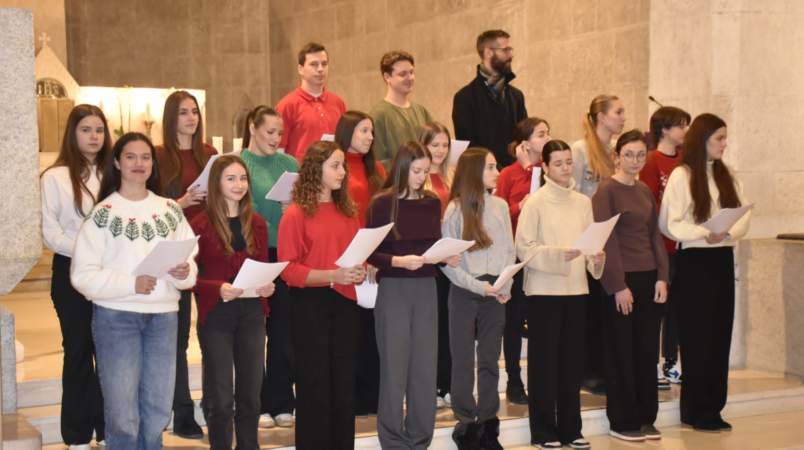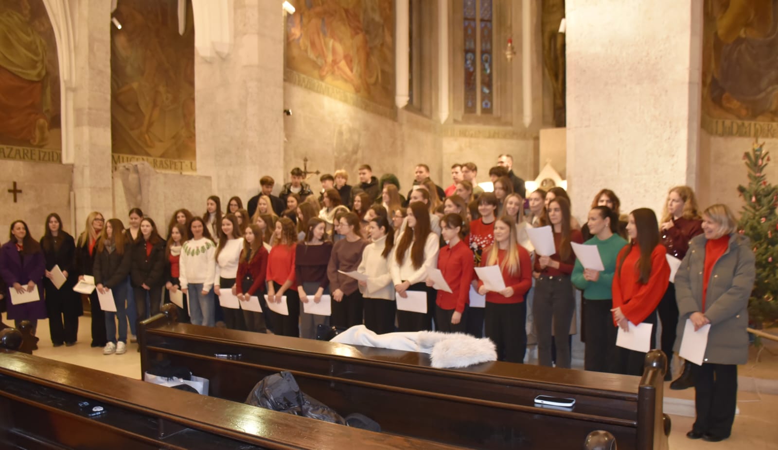 Učenici Gornjogradske gimnazije i Gimnazije Tituša Brezovačkog napunili su crkvu sv. Marka 22. prosinca 2025. svojim prisustvom, pjesmom i molitvom.