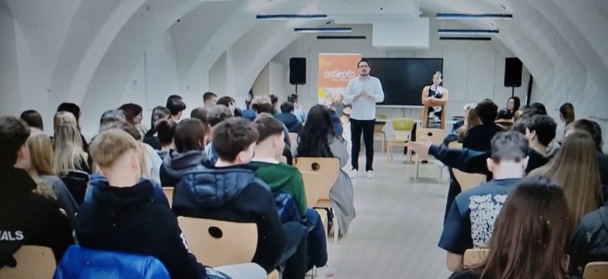 Školske godine 2025./2026. naša je škola bila partner udruge Adopta u provođenju projekta pod imenom “Adoptina NIT – nenasilje, inkluzivnost, tolerancija”. Opći cilj projekta bio je stvoriti uključivo i nenasilno okruženje u školama, odnosno uvjete za zdrav psihofizički razvoj za sve učenike, s posebnim naglaskom na djecu i mlade s različitim iskustvima odrastanja (djeca u alternativnoj skrbi, posvojena i udomljena djeca, djeca različite etničke pripadnosti, djeca koja odrastaju u obiteljima različitih struktura). No suradnja je počela mnogo ranije kada je nastavnica Ana Mrnarević pozvala udrugu Adopta da održi jedno predavanje na satu razrednika. Nastavak je uslijedio ove školske godine edukacijom za nastavnike i nizom radionica za učenike trećih razreda. Ovogodišnju smo suradnju počeli upravo edukacijom za nastavnike; 20. studenog 2025. provedena je edukativna radionica na temu „Psihosocijalne i obrazovne potrebe djece u različitim obiteljima i okruženjima odrastanja“ u trajanju od dva školska sata. Prvu su radionicu učenici imali 13. i 14. siječnja 2026. u trajanju od dva školska sata. Drugu su radionicu u trajanju od jednog školskog sata učenici imali 13. i 19. veljače. Edukaciju i suradnju završili smo predavanjem Margarete Čizmar, djevojke koja nam je prenijela svoje iskustvo odrastanja kao posvojene osobe. Taj je dio nazvan Human Library. Učenici su pozitivno reagirali te su nas iznenadili brojnim pitanjima, empatijom i interesom za temu. Učenici Albert Supina iz 3. E i Nikola Raičković iz 3. B dali su izjavu za medije koji su bili pozvani i prisutni na tom završnom dijelu, a nastavnica Ana Mrnarević govorila je za emisiju Kod nas doma koja je u prilogu sumirala suradnju udruge Adopta i Gornjogradske gimnazije. Pozivamo vas da emisiju pogledate na sljedećem linku: